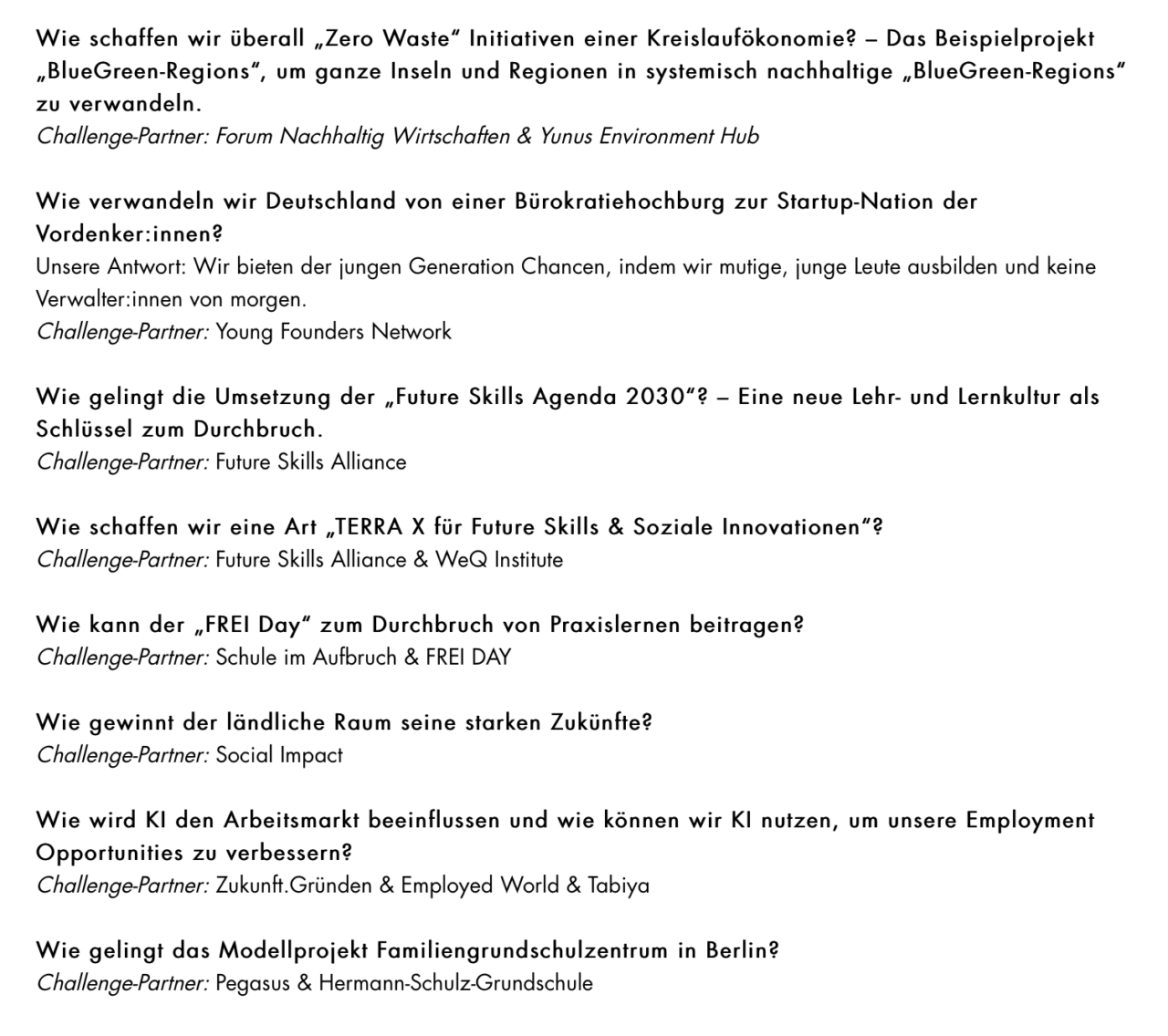Für Deutschland möchte Peter Spiegel – ein langjähriger Freund Muhammads – nun eine Landesorganisation gründen, für die es heute die Auftaktveranstaltung gab. Für den 3ZERO Creathon hat Peter verschiedene Non-Profit-Organisationen eingeladen, aktuelle Challenges zu bearbeiten, deren Ergebnis sie sich im Anschluss gegenseitig präsentieren: