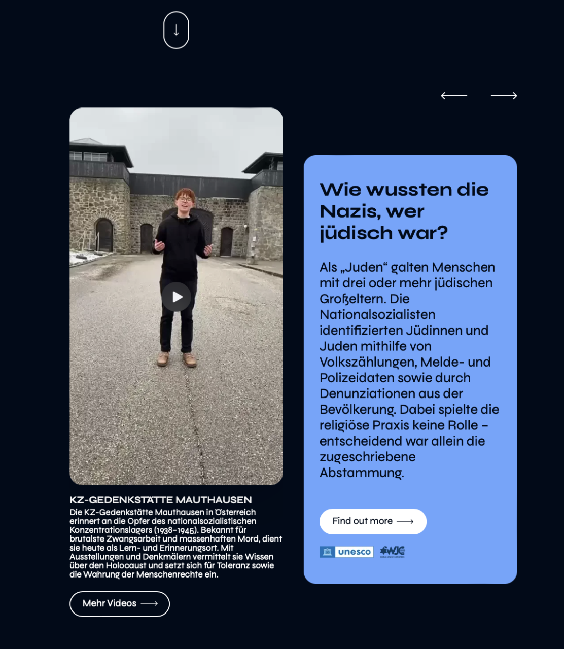 Seit dieser Woche ist die internationale Bildungsplattform Shoah Stories mit innovativen Angeboten für Schüler/-innen und Lehrkräfte online. Sie soll Lehrer/-innen mithilfe von Kurzvideos dabei unterstützen, die Geschichte des Holocaust fundiert und jugendgerecht zu vermitteln.